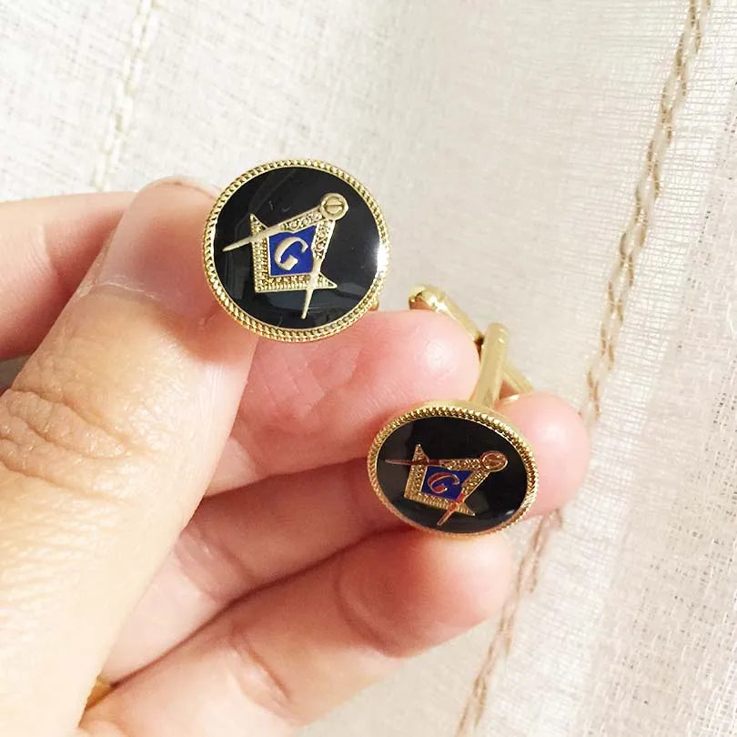 Black Round Shape Enamel Cufflinks Masonic Freemason Square and Compass Free Mason Men Enamel Cuff Links Masonry Sleeve Button