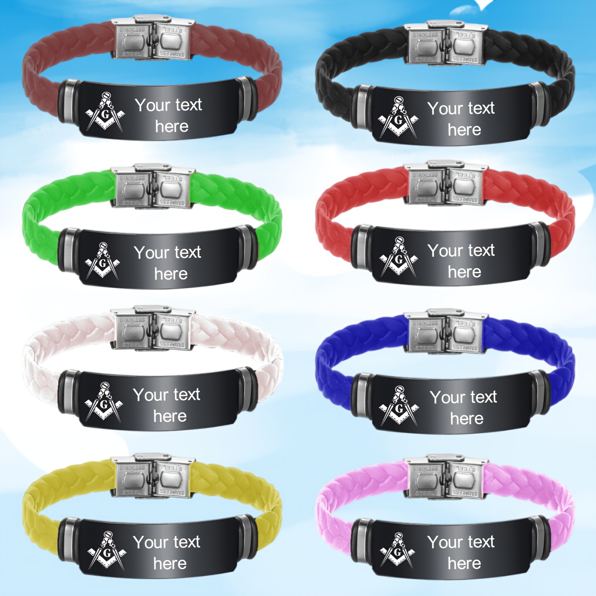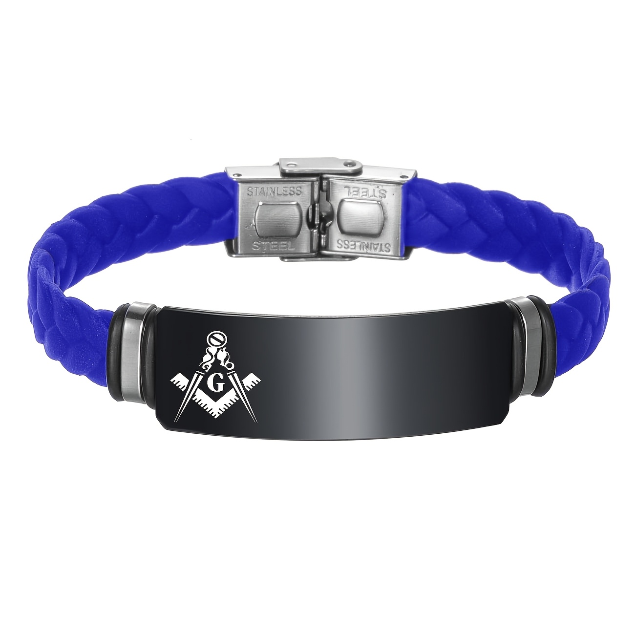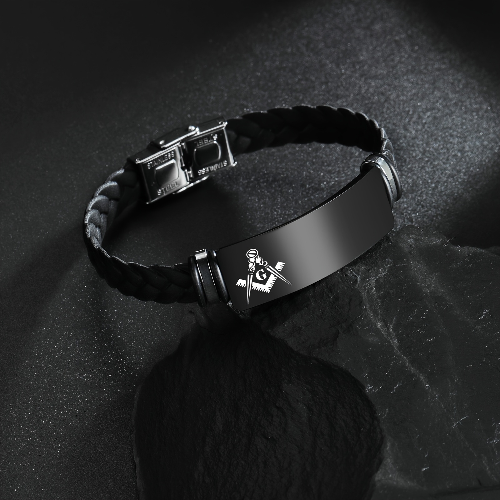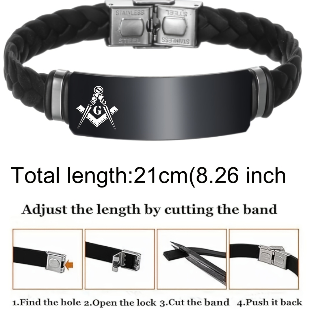 Custom Engraved Masonic Bracelet, Personalized Freemason Braided Silicone Wristband, Mason Symbol Jewelry for Men & Women, Casual Style, Silica Gel Material, Ideal for Valentine's, Mother'S & Father'S Day Gifts
